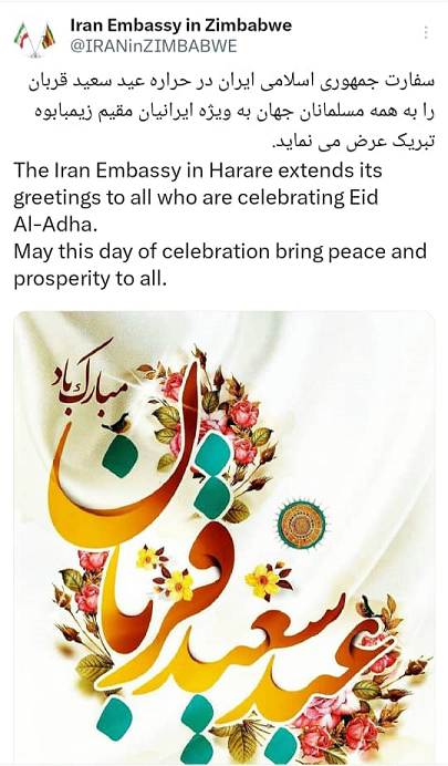 پیام تبریک سفارت جمهوری اسلامی ایران در شبکه ایکس به مناسبت عید قربان