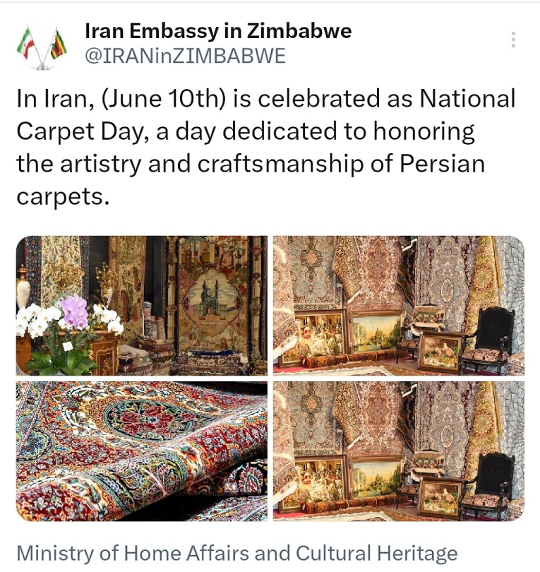 10 ژوئن روز ملی فرش ایرانی، روزی که به گرامی داشت هنر دست هنرمندان ایرانی در بافت فرش ایرانی اختصاص داده شده است.