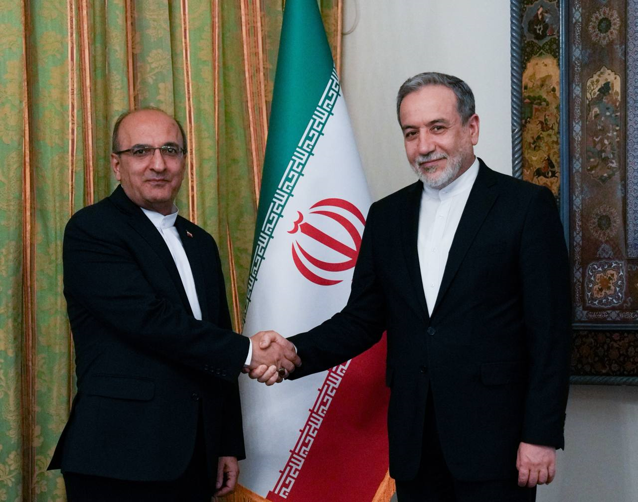 دیدار جناب آقای حسینی، سفیر جدید جمهوری اسلامی ایران در زیمبابوه با جناب آقای عراقچی، وزیر محترم امور خارجه