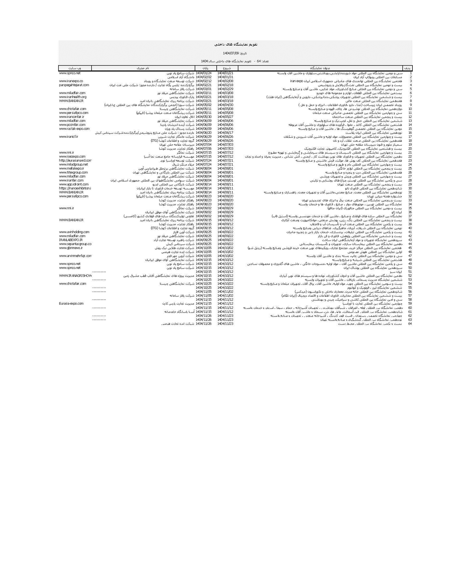 تقویم نمایشگاههای داخلی و بین المللی ایران در سال 1404 را در اینجا (فایل پی دی اف) ببینید